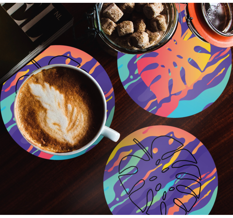 Offrez à votre intérieur une touche de fraîcheur avec nos Dessous de verre motifs de feuilles colorées. Ce design multicolore et abstrait évoque des feuilles modernes et géométriques, apportant une ambiance vivante et dynamique à votre table. Chaque pièce est un véritable festival de couleurs qui saura séduire tous vos invités !