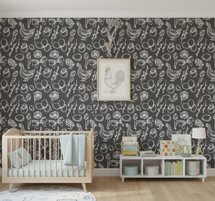 Papier peint chambre enfant motifs de poules charmants