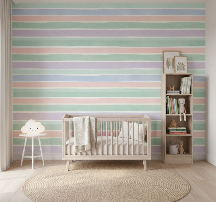 Papier peint chambre enfant rayures douces couleurs