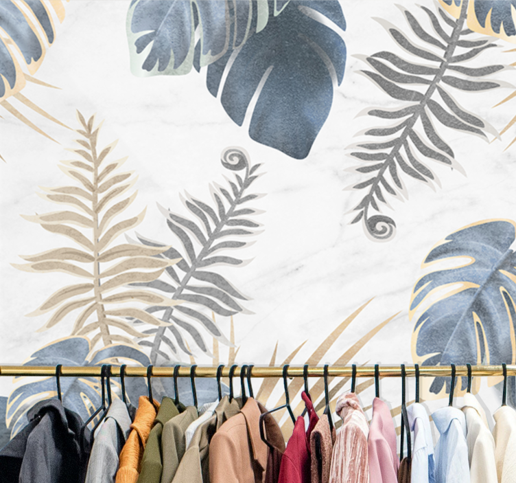 Référence: F12220Un design élégant mettant en avant diverses feuilles et feuillages dans un mélange de couleurs. L'agencement complexe capture l'essence de la nature, mettant en valeur une combinaison de feuilles tropicales et de fougères, créant une atmosphère rafraîchissante et sereine.