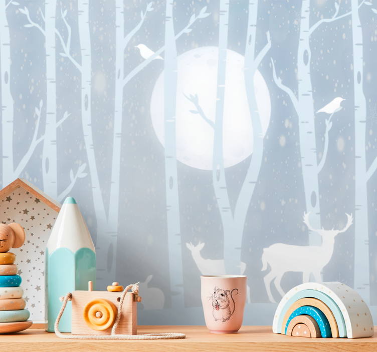 Plongez dans un univers enchanteur avec la tapisserie chambre enfant cerf et lune, où la magie de la forêt prend vie à travers des illustrations captivantes. Ce design unique, mettant en avant des cerfs majestueux, des arbres majestueux, et des oiseaux qui volent sous la lune éclatante, crée une ambiance douce et apaisante pour la chambre de votre enfant. Laissez-vous séduire par ce motif poétique qui évoque la faune nocturne et invite à l'imagination !