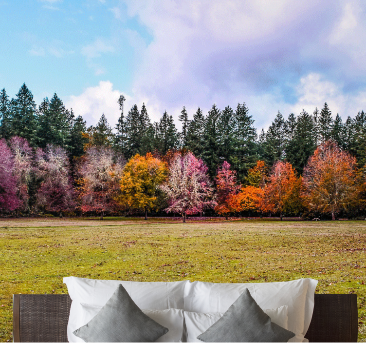 Tapisserie nature forêt d'automne colorée