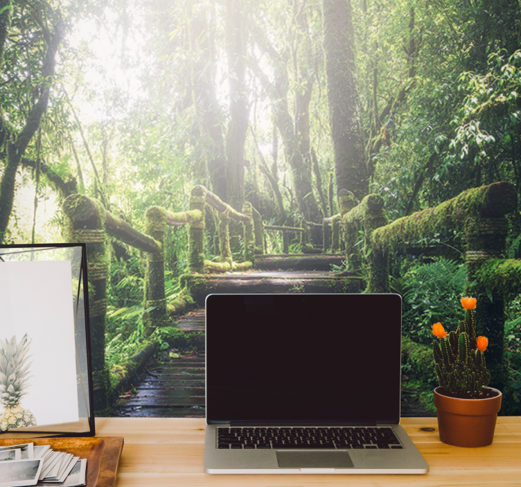 Pour installer la tapisserie nature tapisserie nature sentier boisé luxuriant, il vous suffit d'utiliser de la colle appropriée sur le mur. Munissez-vous d'un rouleau, d'un pinceau, d'une brosse et d'un cutter pour une pose impeccable. C'est simple et rapide, et vous serez ravi du résultat !