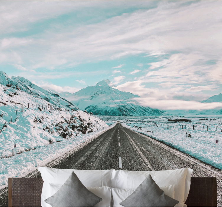Plongez dans un monde hivernal avec notre Tapisserie paysage chemin de montagne glacé. Ce design captivant évoque la beauté d'un paysage enneigé où les routes serpentent à travers des montagnes majestueuses sous un ciel parsemé de nuages. Une invitation à la sérénité, chaque regard porté sur cette œuvre vous transporte vers des contrées lointaines et apaisantes.