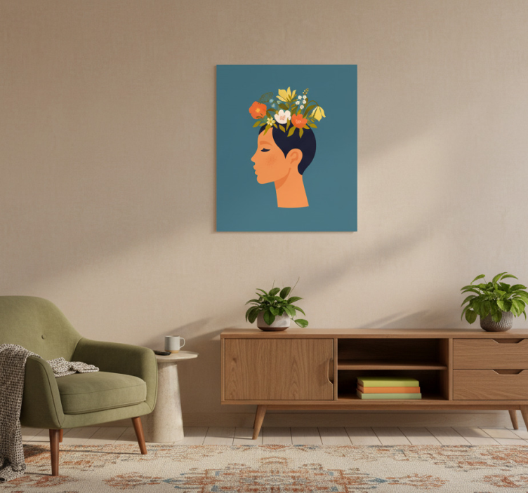 Le Poster fleurs femme abstraite sur fond bleu est parfait pour transformer n'importe quel espace en un lieu inspirant. Il ajoute une touche artistique qui attire le regard et stimule l'imagination. Imaginez-le dans votre salon ou votre bureau, apportant joie et sérénité à chaque instant !