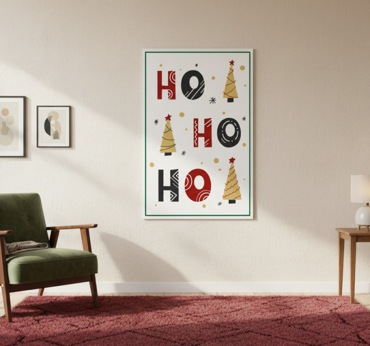 Le Poster noël poster noël design texte ho ho ho de noël est l'élément parfait pour rehausser votre décoration pendant les fêtes. Imaginez ce poster illuminant votre salon ou votre chambre, inspirant joie et convivialité. Il invite à la célébration et à la magie de Noël, rendant chaque moment passé en famille encore plus spécial !