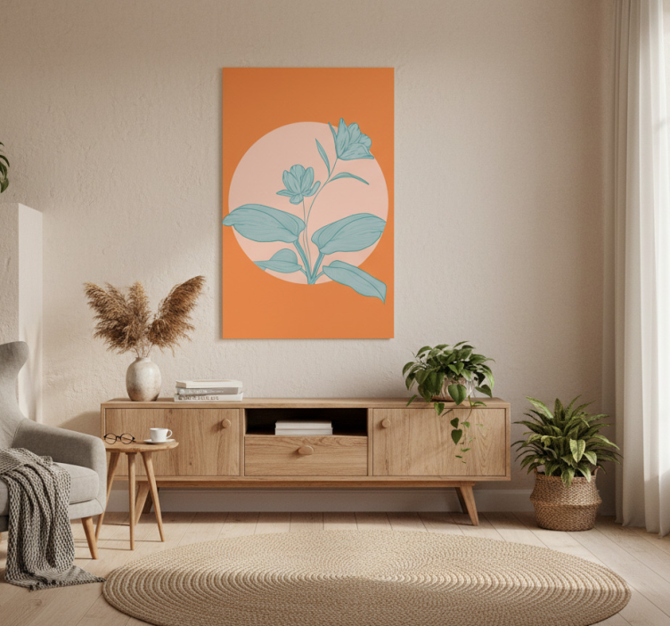 Le Poster salon fleurs bleues sur formes orange est bien plus qu'une simple décoration murale. Il transforme votre espace de vie en un lieu inspirant et joyeux. Avec ses couleurs vives et son design unique, il s'intègre parfaitement à tout type de décoration, ajoutant une note de gaieté et de modernité. Osez faire briller votre intérieur !