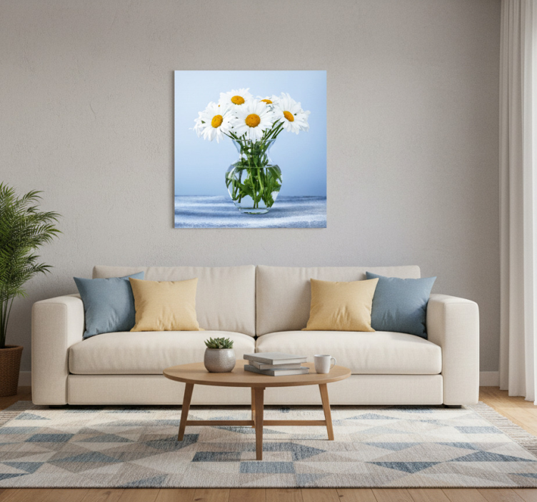 Le Poster salon fleurs de marguerites en pots en verre est une invitation à la beauté naturelle. En l'accrochant sur vos murs, vous transformez instantanément votre espace de vie en un havre de paix. Ce poster inspire la sérénité, favorise une ambiance relaxante et fait naître des sourires. Laissez-vous séduire par son charme enchanteur qui ravive votre décoration intérieure avec élégance !