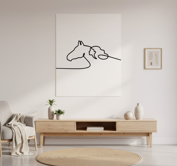 Référence: G895Découvrez notre magnifique Poster salon illustration ligne femme avec chevaux, une œuvre d'art qui allie élégance et modernité. Ce design captivant, où la fluidité des lignes rencontre la puissance des chevaux, apportera une touche unique à votre intérieur, transformant votre espace en un véritable havre de paix. Avec ses couleurs harmonieuses et son style délicat, ce poster devient un élément central de votre décoration.