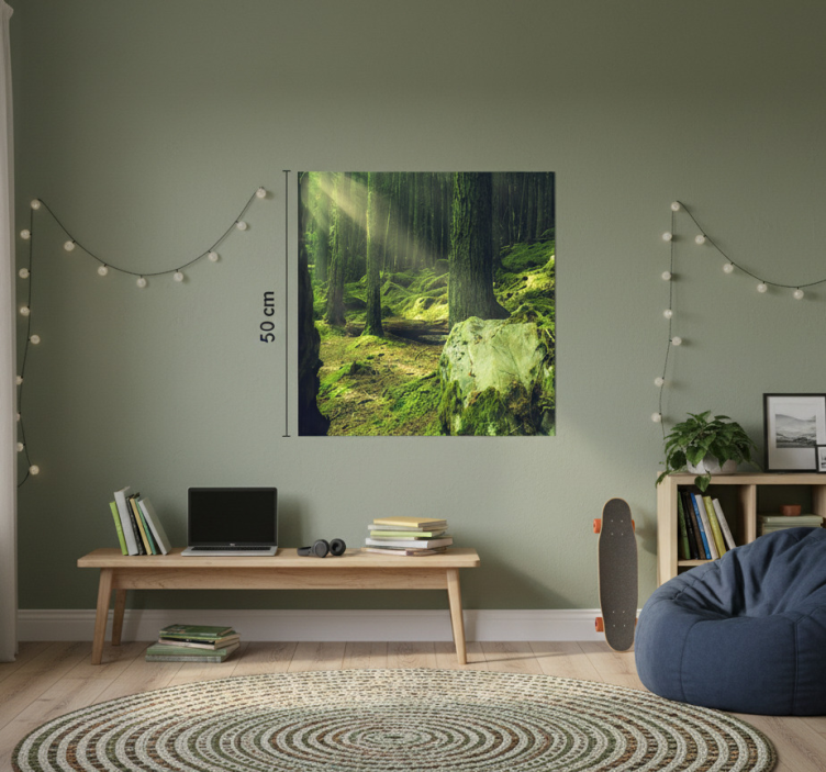 Le Poster salon pierres de nature avec mousse en forêt est l'élément parfait pour enrichir votre décoration. Il invite à la contemplation et crée une atmosphère naturelle et relaxante. Imaginez-vous entouré par la beauté de la nature, apportant une sensation de calme et de bien-être à chaque coin de votre salon !