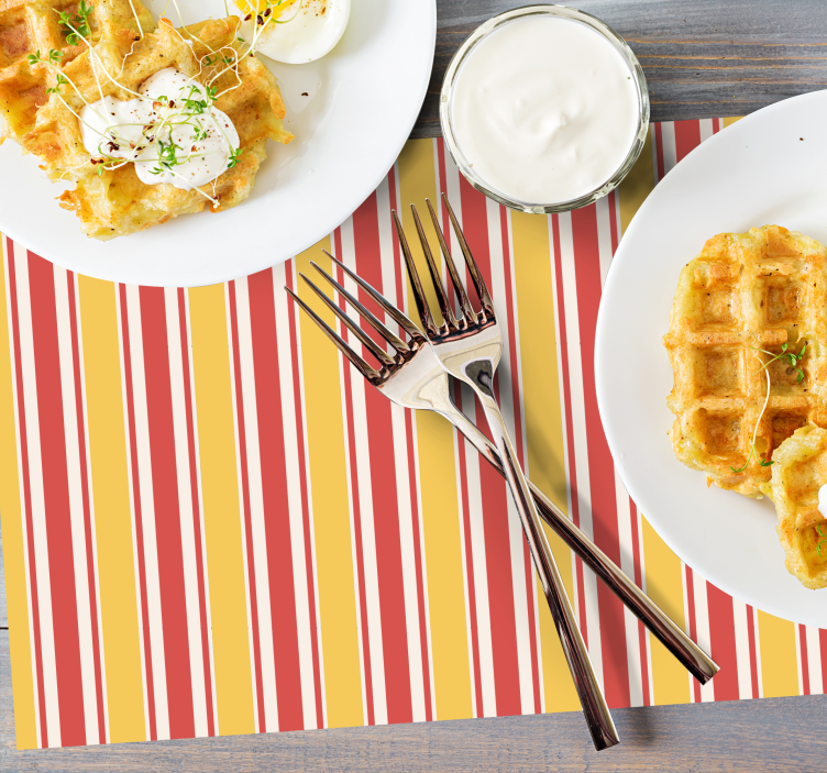 Référence: M4636Un motif rayé lumineux et coloré avec des lignes jaunes, rouges et blanches. Ce design joyeux apporte une touche amusante et vivante à tout environnement, parfait pour les rassemblements d'enfants ou les repas familiaux décontractés, enrichissant l'expérience culinaire avec ses couleurs vives.