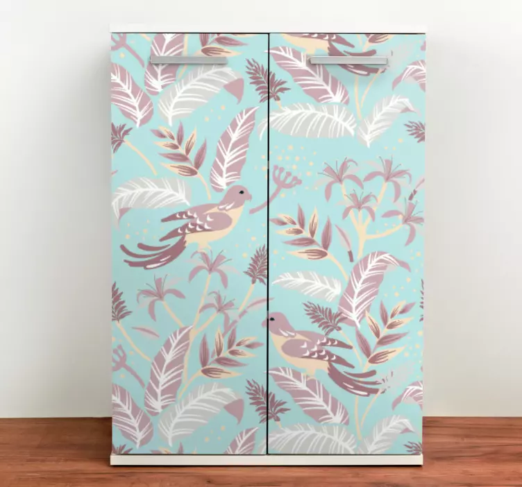 Découvrez l'Adhésif meuble Écusson aviaire botanique, un véritable bijou de design qui marie l'exotisme et la douceur. Avec ses motifs d'oiseaux colorés, de perroquets vibrants, de feuilles luxuriantes et une palette de couleurs pastels, ce modèle évoque la flore et la faune tropicales. Transformez vos meubles en un espace décoratif inspiré par la nature et laissez entrer la beauté de cet univers floral dans votre intérieur.