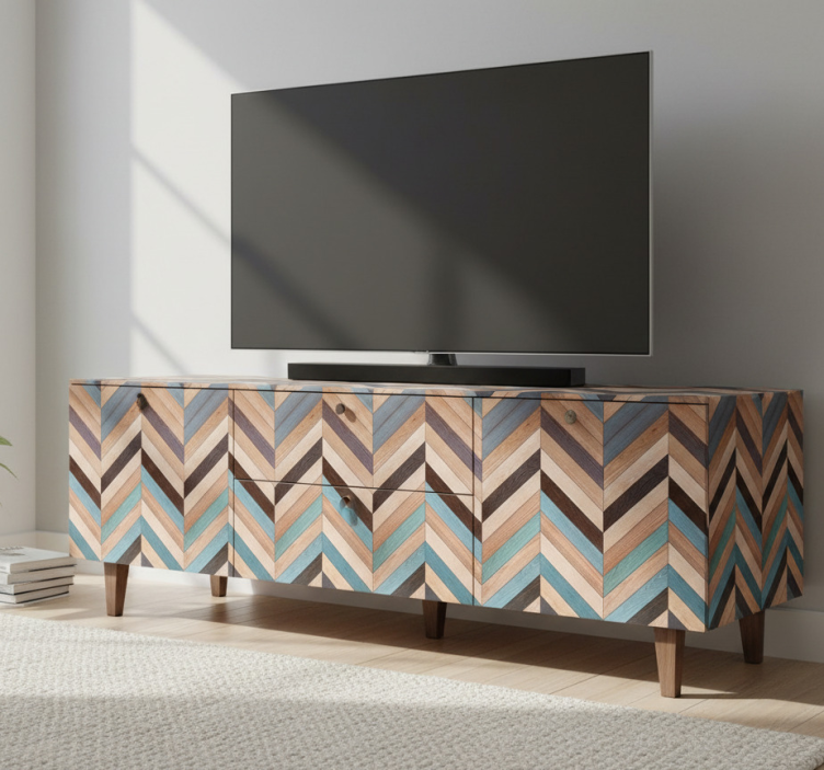 Adhésif meuble motif chevrons bois multicolores