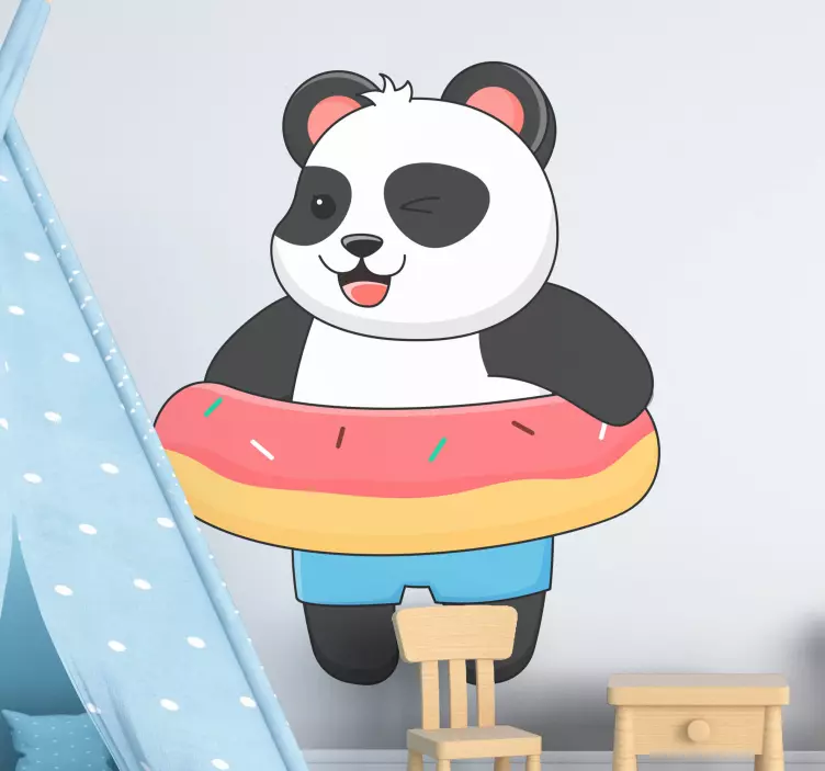 Référence: A46909Un personnage de panda espiègle est représenté en train de déguster un donut, dégageant une ambiance joyeuse. Le design charmant présente des couleurs vives et une expression humoristique, le rendant parfait pour les espaces destinés aux enfants. Ce design évoque des sentiments de joie et de plaisir, idéal pour créer une atmosphère vivante.