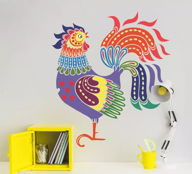 Découvrez notre Sticker animaux de la ferme art du coq éclatant, une illustration vibrante et colorée qui apporte la vie à votre intérieur. Avec son motif captivant représentant un coq, cet animal est idéal pour cultiver une ambiance joyeuse. Les couleurs vives de ce modèle d'oiseau illuminent chaque espace et ajoutent une touche ludique à votre décoration.