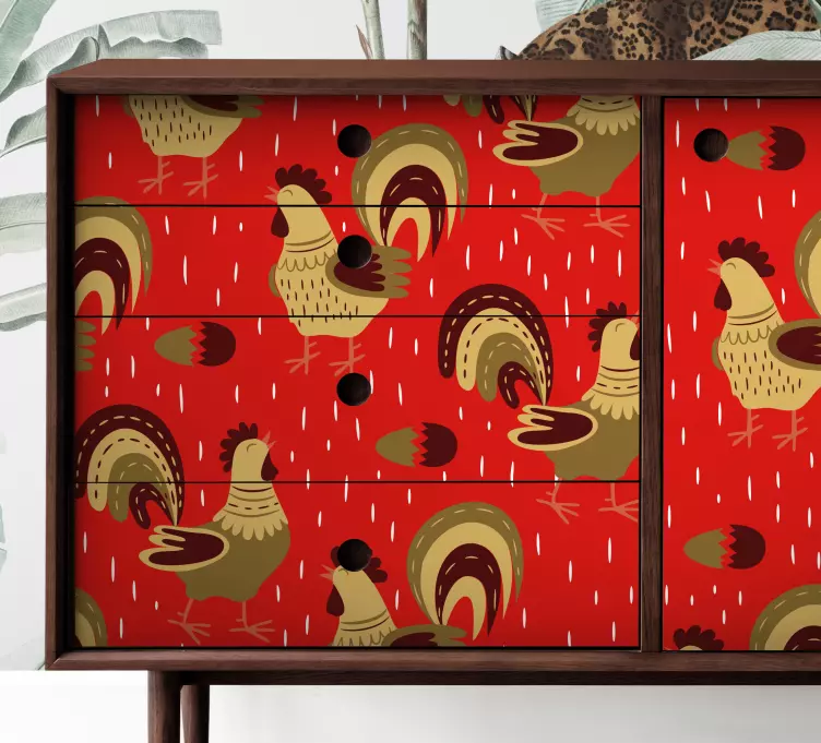 Découvrez notre Sticker animaux de la ferme motif coq ludique, une illustration colorée qui apporte une touche joyeuse à vos meubles. Avec des coqs dans des teintes éclatantes de rouge, ce modèle est parfait pour cultiver une ambiance chaleureuse et conviviale dans n’importe quelle pièce.