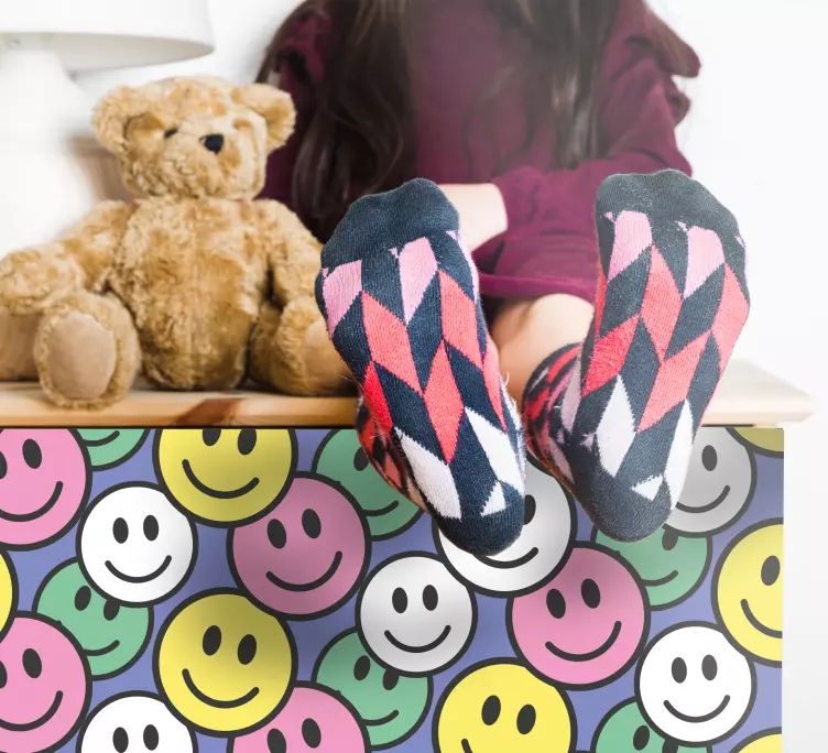 Découvrez notre Sticker autres animaux motifs de sourires colorés, une véritable œuvre d'art qui illumine vos meubles avec des motifs espiègles et vibrants. Ce design coloré, enrichi de couleurs pastels, apporte une touche d'amusement à votre intérieur, transformant chaque espace en un lieu joyeux et accueillant. Le modèle Smiley incarne la gaieté et le fun, idéal pour ceux qui souhaitent ajouter une note de fraîcheur et de bonne humeur à leur décoration.