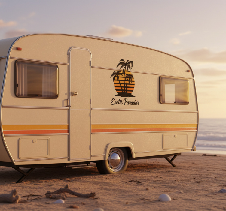 Sticker camping car coucher de soleil exotique