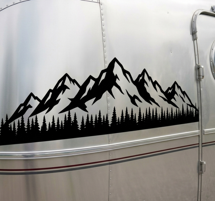 Référence: A54710Un design frappant présente une silhouette de montagnes majestueuses avec une dense forêt en dessous, parfait pour améliorer l'esthétique d'un véhicule récréatif. Les lignes complexes capturent la grandeur de la nature, évoquant un sentiment d'aventure et de grands espaces.