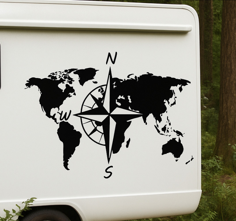 Sticker camping car worldmap avec compas
