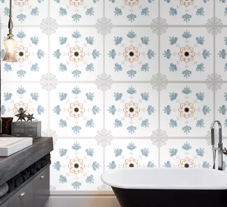 Apportez une touche de charme à vos espaces avec notre Sticker carrelage motif mosaïque floral. Ce design captivant allie des motifs végétaux et floraux à une palette de bleus apaisants, évoquant l'élégance des carreaux de ciment traditionnels. Avec son allure céramique, ce sticker enchantera vos murs et les transformera en véritables œuvres d'art !