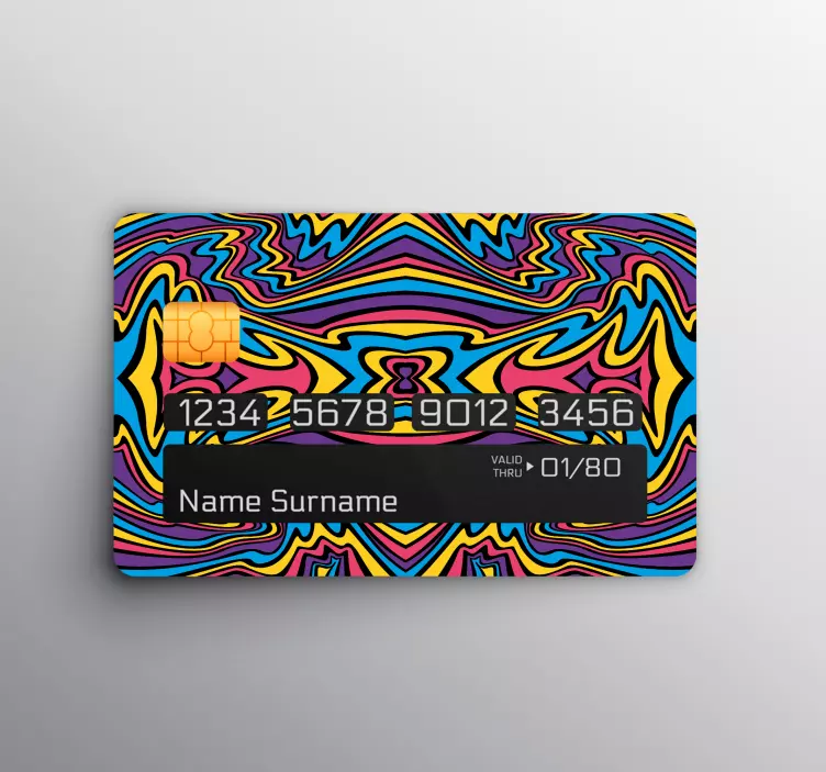 Découvrez notre Sticker carte bancaire Élément abstrait vivant, un véritable chef-d'œuvre psychédélique qui transforme votre carte de crédit en une œuvre d'art vibrante et colorée. Avec son design abstrait tourbillonnant, cet autocollant ajoute une touche de folie à vos transactions quotidiennes. Laissez-vous séduire par ce modèle unique qui illumine votre carte de crédit et attire tous les regards !