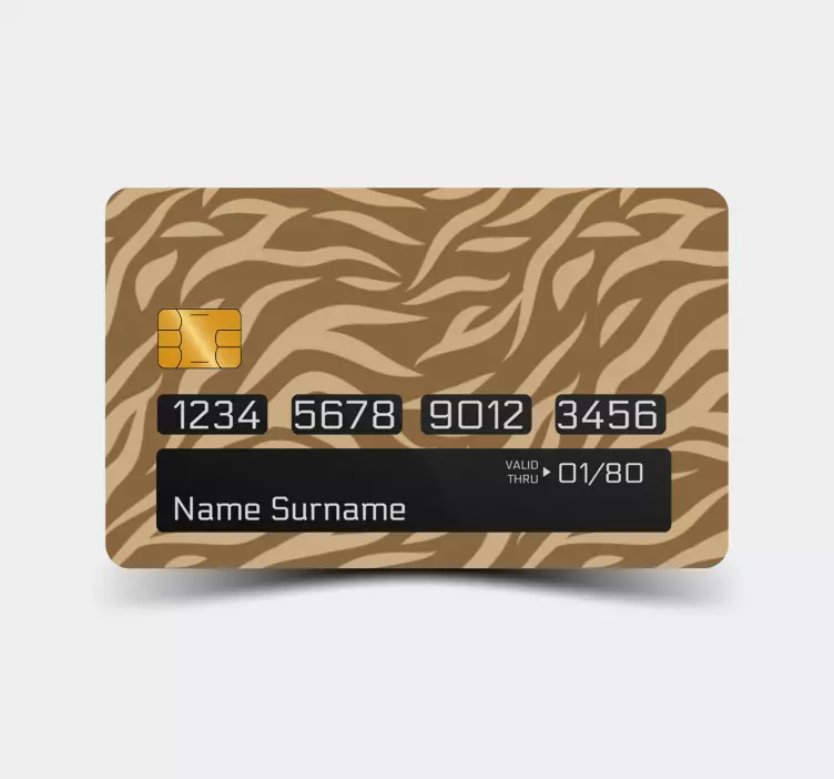 Découvrez notre Sticker carte bancaire motif sauvage, un autocollant au design graphique captivant qui transforme votre carte de crédit en une œuvre d'art. Avec son motif inspiré de la peau de tigre et d'empreintes d'animaux, cet autocollant évoque la beauté sauvage de la nature. Les nuances de brun et les motifs audacieux, rappelant la peau de zèbre, apportent une touche d'élégance abstraite à votre carte, tout en la protégeant.