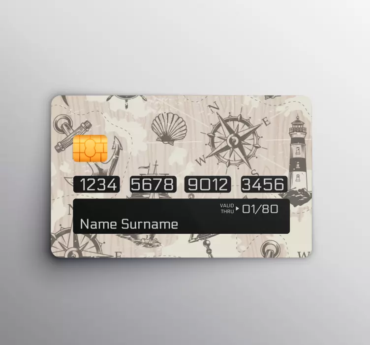 Découvrez notre Sticker carte bancaire thème nautique, un véritable chef-d'œuvre graphique qui embellit votre carte de crédit ! Avec des illustrations captivantes d'ancres, de phares, de coquillages et de boussoles sur un fond évoquant le bois, ce modèle raffiné vous plongera dans l'univers marin. Ajoutez une touche de style à votre quotidien tout en vous démarquant grâce à ce design unique qui évoque l'aventure et la liberté des mers.
