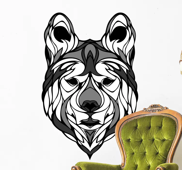 Ajoutez une touche artistique à votre intérieur avec notre Sticker chiens et chats tête de chien artistique. Ce design captivant représente un loup dessiné de manière abstraite, offrant un portrait décoratif en noir et blanc qui attire tous les regards. Chaque détail de cet animal est soigneusement élaboré pour apporter une ambiance unique et stylée à votre espace.