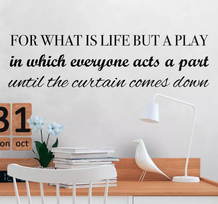 Référence: A49740Une phrase qui fait réfléchir reflète l'idée que la vie est semblable à une performance théâtrale, où chaque individu joue un rôle significatif jusqu'à la fin. Ce message encourage à apprécier la nature éphémère de la vie et l'importance de chaque action entreprise.