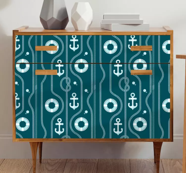 Référence: A49487Avec un charmant thème nautique, ce design intègre des ancres et des bouées de sauvetage disposées dans un motif rythmique. La combinaison de lignes et d'éléments circulaires évoque une ambiance maritime, idéale pour rehausser un espace inspiré du littoral.