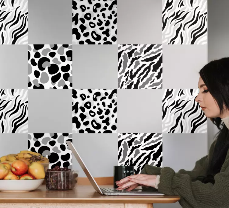 Découvrez le Sticker déco carreaux élégants à motifs, une véritable œuvre d'art pour votre intérieur ! Avec ses motifs inspirés des tuiles et du carrelage, ce sticker arbore des empreintes d'animal au design léopard, le tout dans une palette monochrome. Son style moderne allie textures abstraites et formes géométriques, apportant ainsi une touche d'élégance à chaque pièce de votre maison.