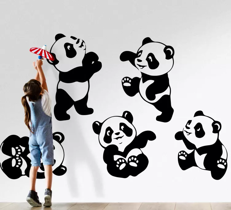 Référence: A48530Une composition ludique mettant en scène divers personnages de panda dans des poses charmantes. Le design souligne l'innocence et la joie de l'enfance, ce qui le rend parfait pour l'espace d'un enfant. Chaque panda reflète un sens de l'amusement et de l'aventure, encourageant l'imagination et la créativité.