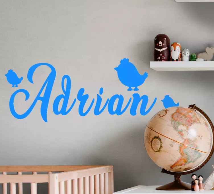 Référence: A48927Avec un nom personnalisé accompagné de charmants motifs d'oiseaux, cet article apporte une touche fantaisiste à l'espace de tout enfant. La délicieuse combinaison de typographie et d'images crée une atmosphère accueillante, parfaite pour favoriser la créativité et l'individualité dans un environnement ludique.