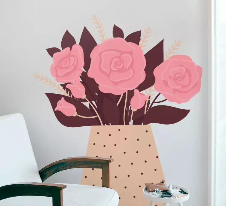Référence: A48128Une belle composition florale avec des roses roses disposées dans un vase à pois. Ce design apporte une touche d'élégance à tout espace, célébrant la beauté naturelle des fleurs tout en ajoutant une atmosphère chaleureuse et accueillante.