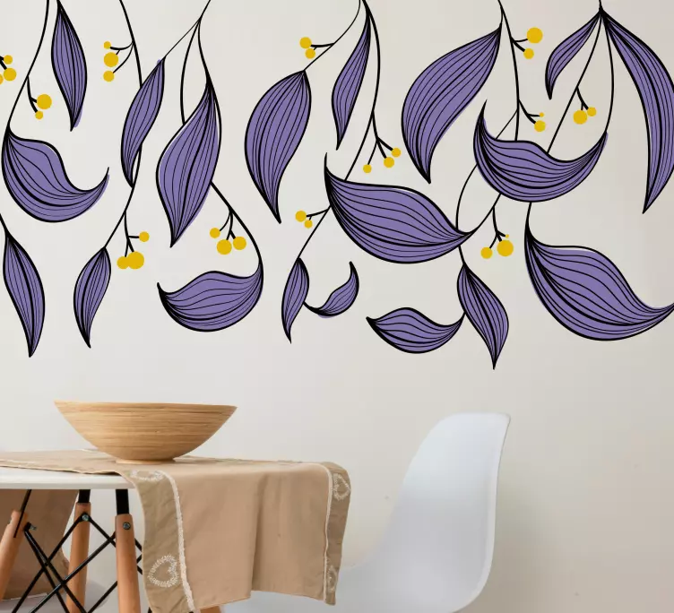 Sticker fleurs et plantes motif feuilles violettes