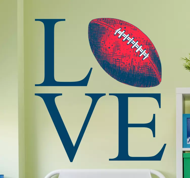 Transformez votre espace avec le Sticker football américain art de l'amour pour le football. Ce sticker inspirant est parfait pour les passionnés qui souhaitent apporter une touche de sport à leur décoration. Ajoutez une ambiance énergique et chaleureuse à votre intérieur en affichant votre amour pour le football et le rugby !