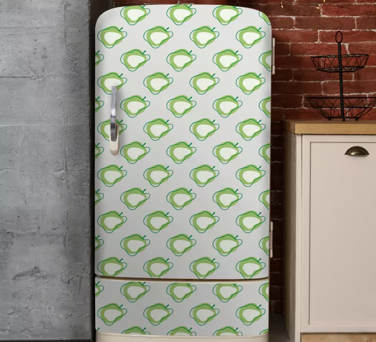 Ajoutez une touche de fraîcheur à votre cuisine avec notre Sticker frigo design motif fruits. Ce magnifique design, inspiré par le griffonnage, met en avant des pommes et d'autres fruits dans des tons de vert qui illumineront votre réfrigérateur. C'est un accessoire parfait pour un espace convivial et rafraîchissant qui attire le regard !