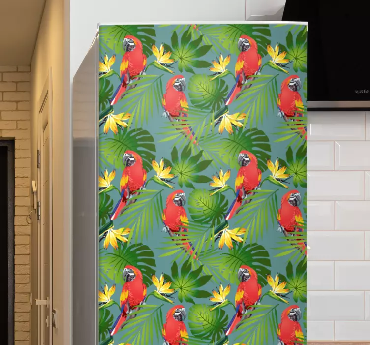 Sticker frigo thème perroquet tropical
