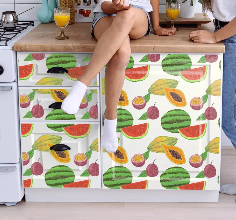 Découvrez notre Sticker fruit création motif de fruits qui apporte une touche colorée et tropicale à votre espace ! Avec des motifs de pastèques, de papaye et de citron, ce design joyeux embellit vos meubles et crée une atmosphère vivante. Laissez-vous séduire par ce modèle qui transforme votre intérieur en un véritable jardin fruité !