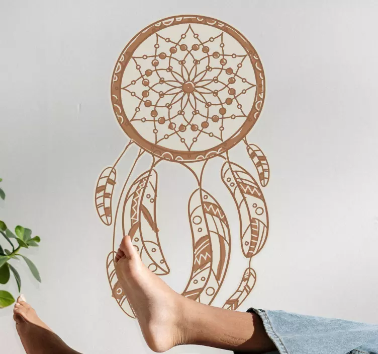 Découvrez notre Sticker monde design de attrape-rêves complexe qui allie l'élégance boho et une touche spirituelle. Avec ses motifs de plumes et son attrapeur de rêves beige, ce sticker apporte une atmosphère artistique et chaleureuse à votre décoration de maison. Transformez vos murs en un véritable tableau vivant qui invite à la rêverie !