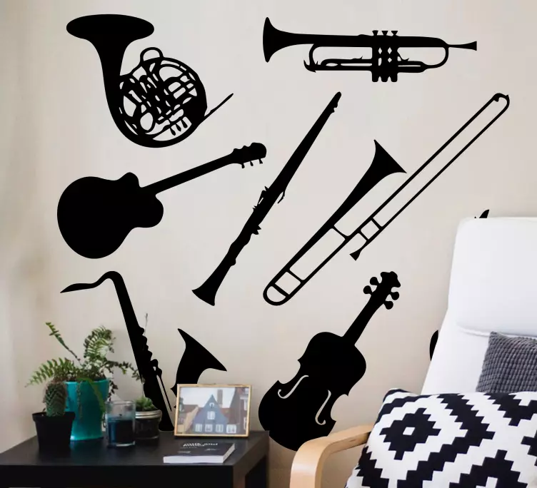 Découvrez notre Sticker musique collection d'instruments de musique, un design captivant qui évoque l'ensemble d'un orchestre. Les silhouettes d'instruments musicaux s'entrelacent harmonieusement, apportant une touche artistique à votre décor. Ce sticker est parfait pour tous les mélomanes souhaitant embellir leur espace avec une note de créativité musicale !