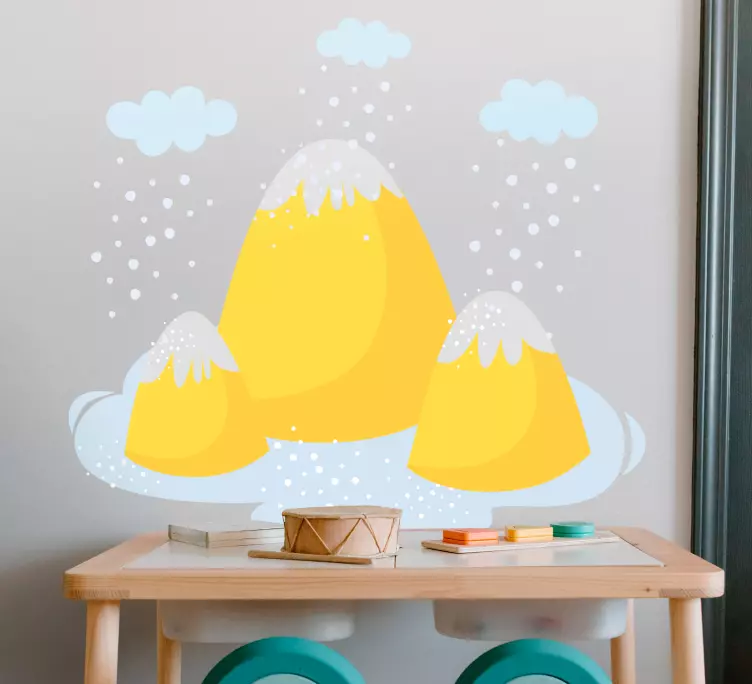 Plongez dans l'univers enchanteur de la nature avec notre Sticker nature cimes jaunes des montagnes. Ce superbe motif, baigné de nuances de jaune, évoque des sommets majestueux, des illustrations délicates de nuages, et de la neige scintillante. Son design capricieux apporte une touche de fraîcheur et de sérénité, transformant n'importe quel espace en un véritable havre de paix.