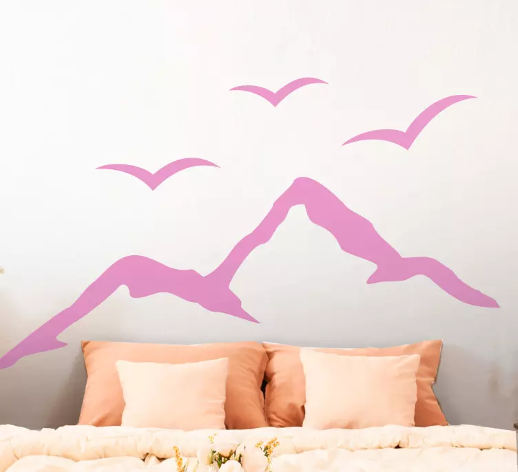 Référence: A48502Une silhouette de montagne élégante associée à des oiseaux en vol crée une atmosphère sereine. Ce design met en avant la beauté de la nature, idéal pour promouvoir la tranquillité dans les espaces de vie. Le style minimaliste garantit qu'il complète divers thèmes de décoration.