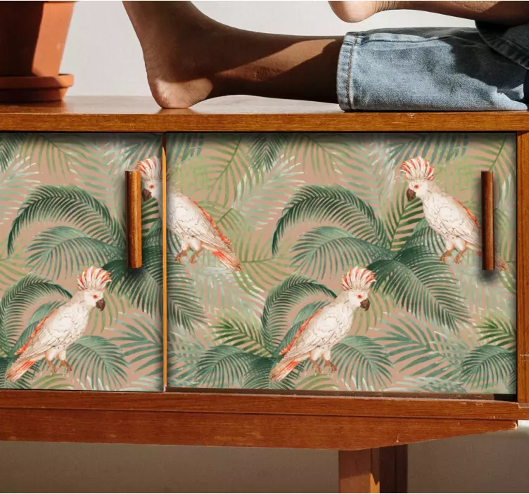 Plongez dans un univers coloré avec notre Sticker nature perroquets tropicaux et palmiers ! Ce design enchanteur met en avant des feuilles luxuriantes, des perroquets vibrants et des palmiers majestueux, créant une atmosphère chaleureuse et accueillante. Les plumes délicates et le feuillage abondant invitent à la détente, tout en apportant une touche de nature à votre espace. Transformez vos meubles avec cette œuvre d'art vivante et laissez les oiseaux tropicaux égayer votre intérieur.