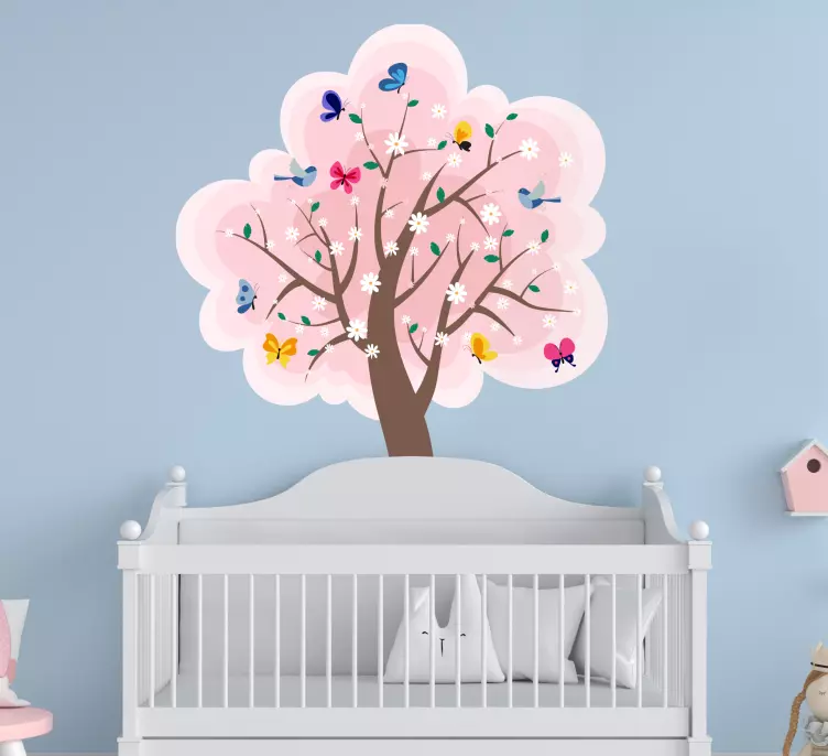 Découvrez notre Sticker nature scène d'arbre en fleurs, une illustration vibrante qui évoque la beauté de la nature. Ce design captivant présente un arbre majestueux, entouré de fleurs colorées et de papillons dans un mélange harmonieux de couleurs. Avec des teintes de rose et des motifs printaniers, il apportera une touche de fraîcheur et de joie à votre intérieur !