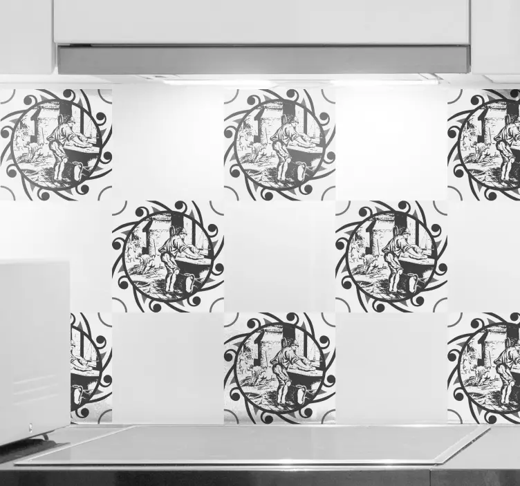 Découvrez notre sticker objet scène de bricolage vintage, une véritable œuvre d'art qui marie l'univers de la pâtisserie avec une touche d'élégance. Ce design unique présente une personne engagée dans son artisanat, entourée de tuile et de gravure. Son style noir et blanc apporte une note artistique et abstraite, idéale pour sublimer vos espaces avec une touche rétro !