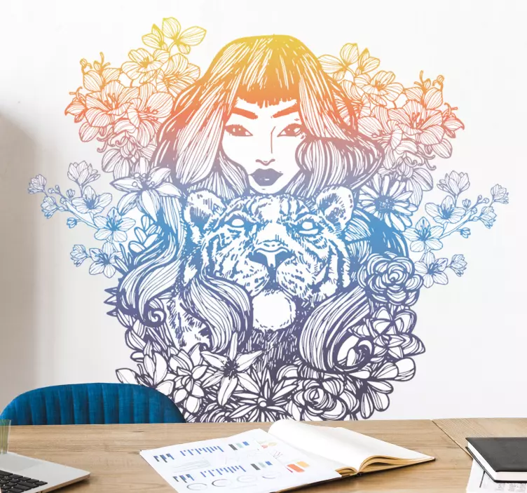 Sticker personnes et personnages femme avec tigre