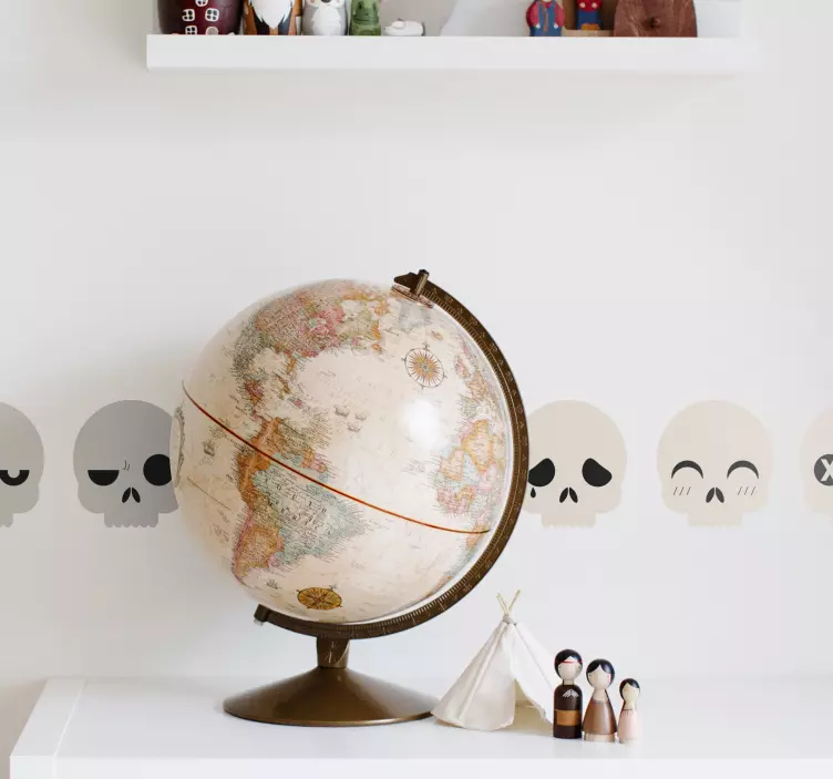 Ajoutez une touche espiègle et décorative à votre espace avec notre Sticker personnes et personnages têtes de crâne fantaisistes. Ce design captivant arbore des crânes de pirate expressifs qui ne manqueront pas d'attirer l'attention. Que ce soit pour une chambre d'enfant ou un coin créatif, ces personnages uniques insuffleront une ambiance vivante et originale à votre décoration.