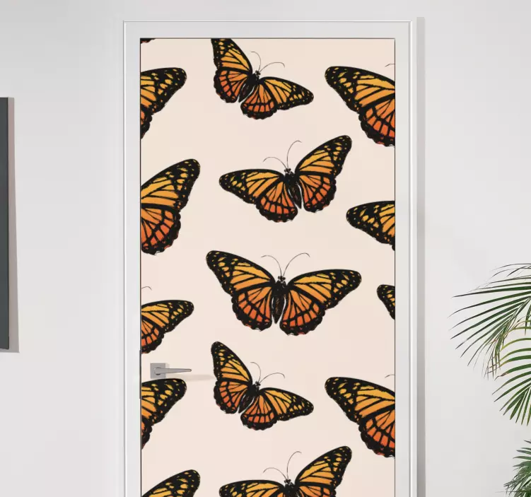 Découvrez notre Sticker porte illustration de papillons colorés, une œuvre d'art graphique qui transforme votre porte en un véritable chef-d'œuvre ! Avec ses magnifiques papillons, notamment le majestueux monarque, ce modèle évoque la beauté de la nature. Laissez-vous séduire par les teintes vibrantes d'orange qui apportent une touche décorative et joyeuse à votre intérieur.